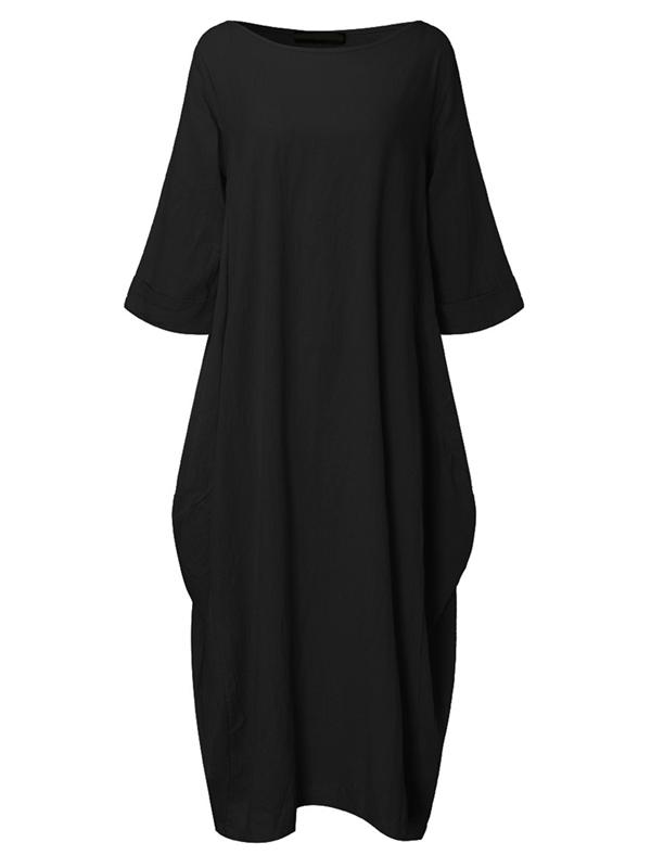 ZANZEA Women Crewneck 3/4 Batwing Sleeve Baggy Maxi Long Shirt Dress Casual Party Kaftan Solid Robe Vestido Plus Size