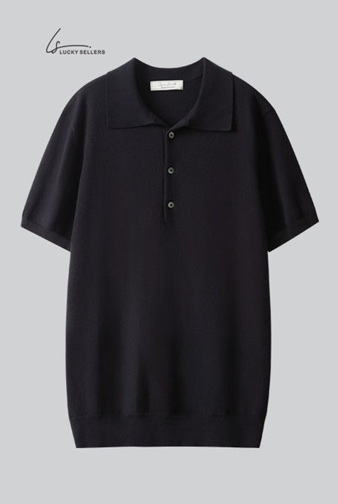 100% Cotton Thin Short Sleeve Button Lapel Polo Shirt Knitted Business Casual Slim Fit Men's T-shirt