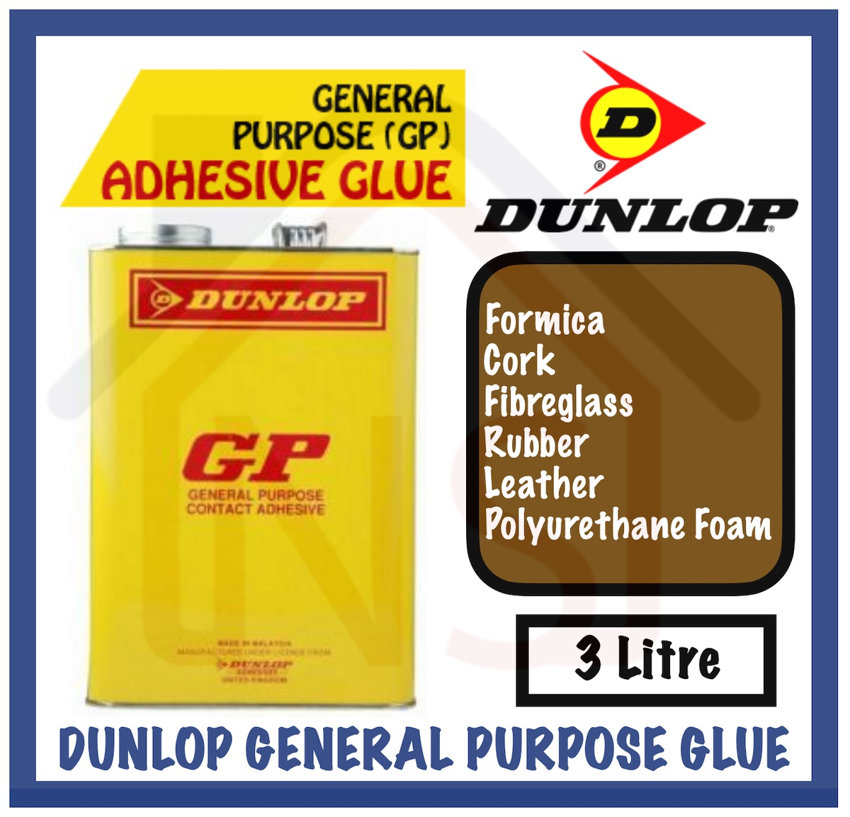 DUNLOP GENERAL PURPOSE CONTACT ADHESIVE GLUEOption for Size: 65ml / 900ml / 3 LitreA general purpose contact adhesive especially for bonding formica, rubber, cork, leather, fibreglass, polyurethane foam, e.v.a. to wood, metal or concrete.
