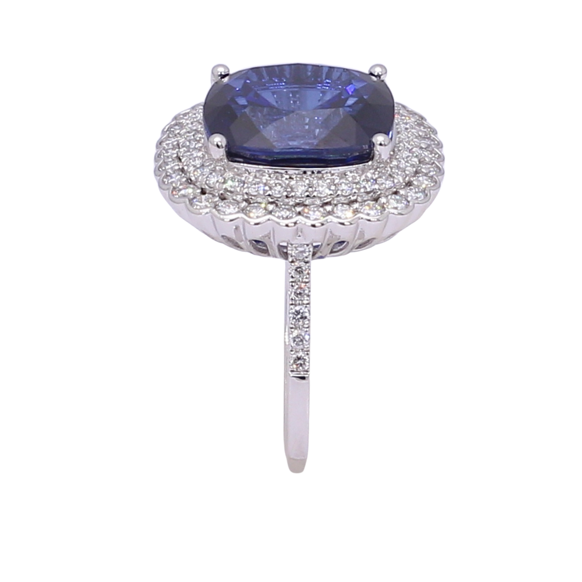 TAKA Jewellery Cushion Cut Lab Grown Blue Sapphire Diamond Ring 10K