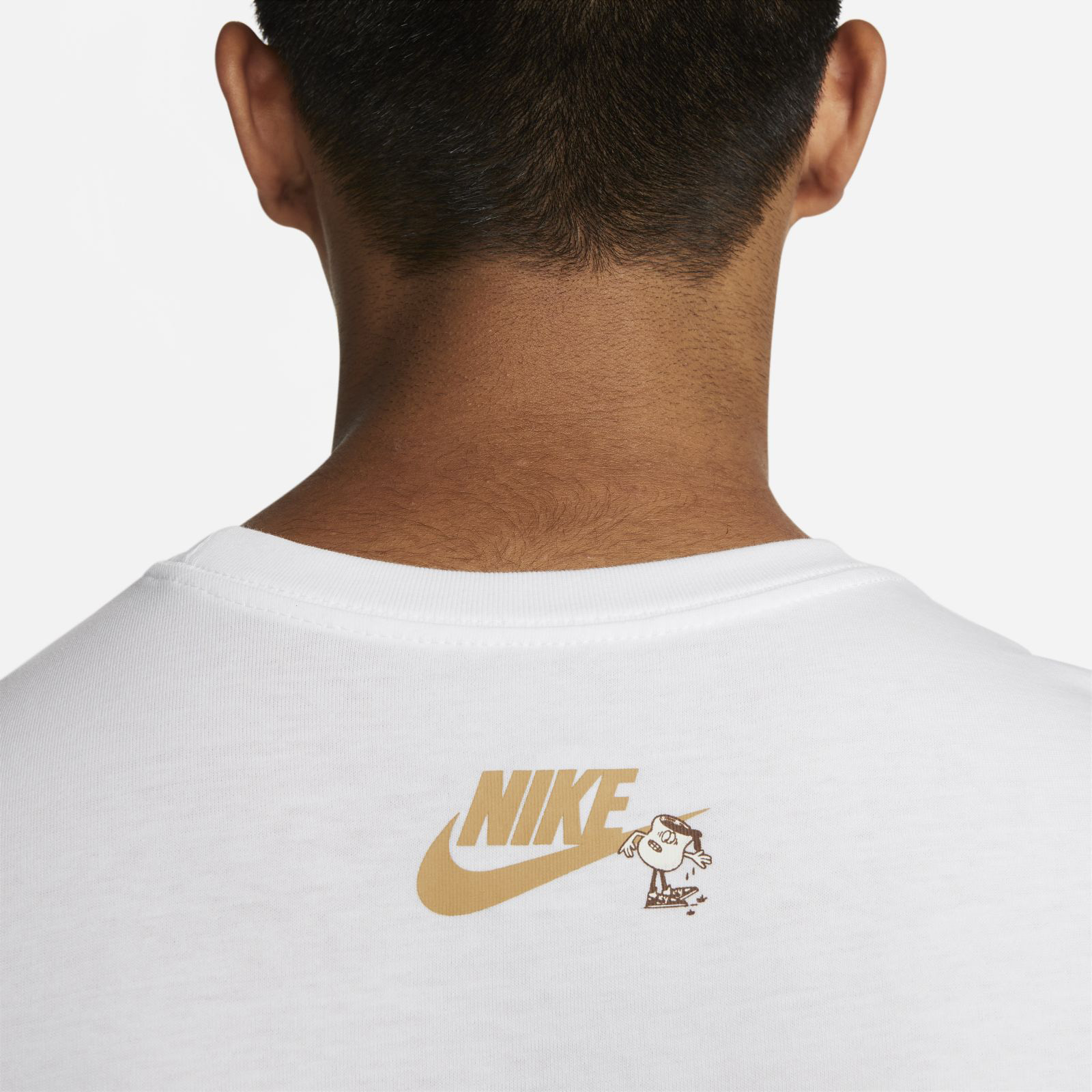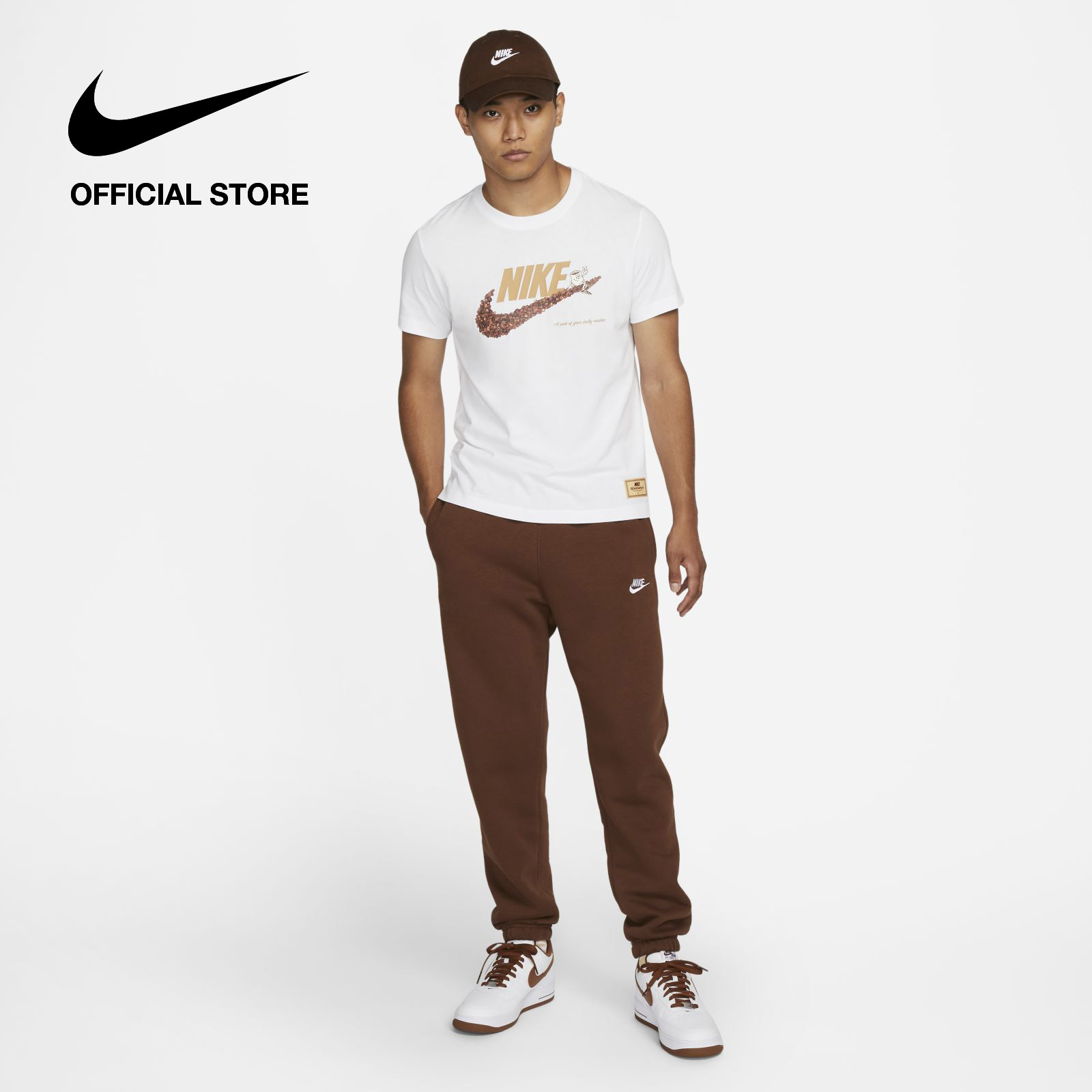 Rise and grind with the Swoosh and keep your style as fresh as your coffee beans. Made with our soft, lightweight cotton in a relaxed fit, this tee keeps it casual and comfy all day. Printed cafe-inspired graphics get you going in the morning.