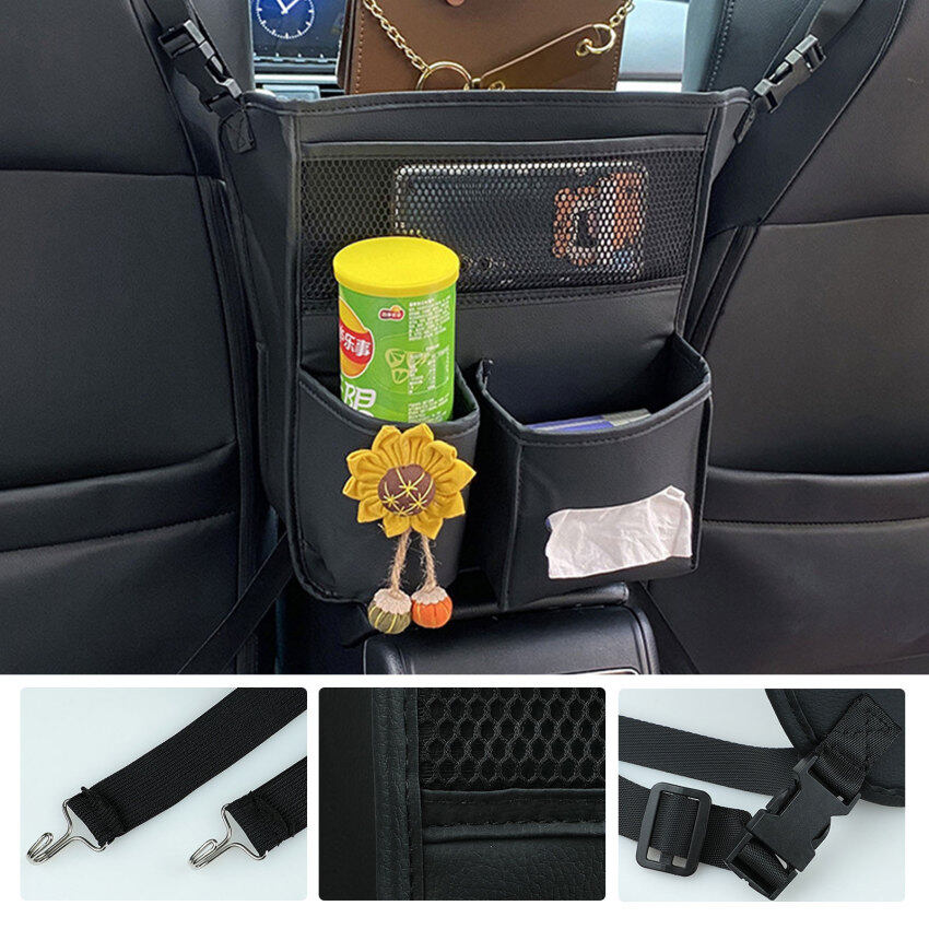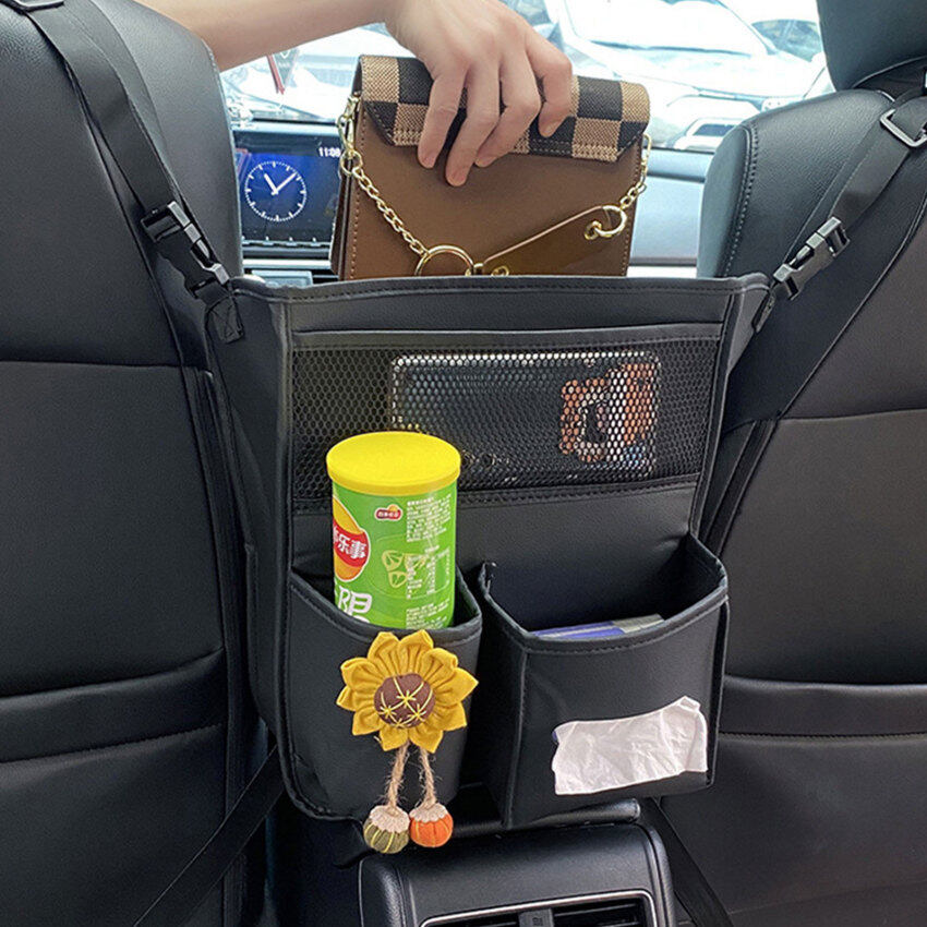 Leather Car Storage Bag Interior Auto Seat Middle Box Seat Back Hanger Stowing Tidying Hanging Net Pocket Organizers for Car